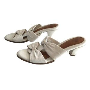 Nurcare women's white slip-on heel sandals in size 7 come with some signs of wear on the heel and throughout but retain their elegant appeal.