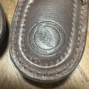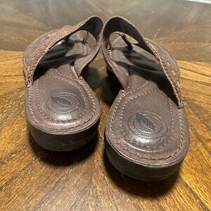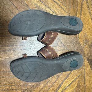 NURTURE Sandals Womens 7.5M Slip On Brown Slide Mule Brown Leather Kitten Heel