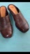 NURTURE Swift brown leather mules heeled clog padded footbed neutral minimalist