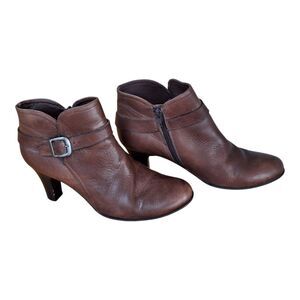 NURTURE Talin Brown Premium Leather Heeled Zip Ankle Boot 9.5M Buckle Bootie