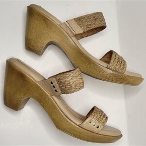 Size 8.5M STRAPPY WITH OPEN TOE CHUNKY STYLE HEEL.