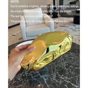 The NUSTTAL Acrylic Clutch Purse is a stylish handbag designed for women, perfect for a special occasion such as a wedding. Made with a gold acrylic exterior and a gold metal handle/strap, this clutch exudes elegance and sophistication. The irregular shell design adds a touch of uniqueness to the overall look, making it a standout piece for any evening event.