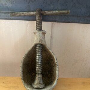 NUT CRACKER - Vintage WALNUT SHAPED Solid metal T-Bar Screw Vice Nut Cracker