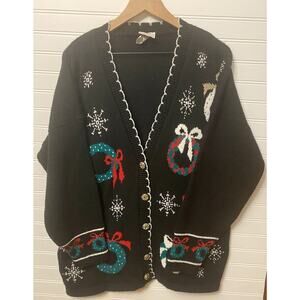 NUTCRACKER CHRISTMAS SWEATER OVERSIZED LARGE CARDIGAN BOWS WREATHS