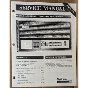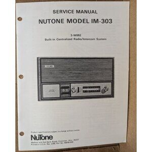 NUTONE SERVICE MANUAL BUILT-IN CENTRALIZED RADIO/INTERCOM SYSTEM MODEL IM-303