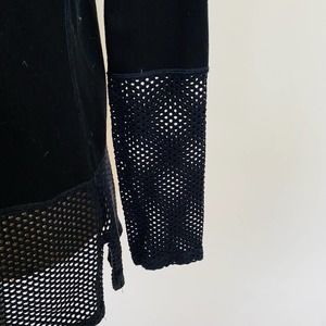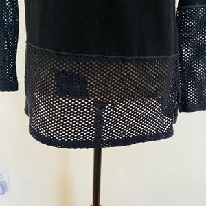 NUX Active Cowl Neck Mesh Netting Pullover Athleisure Sweatershirt Top Black