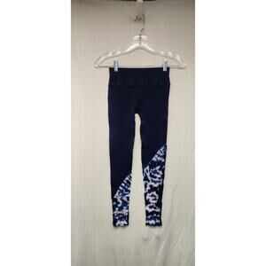 NUX Ribbed Tie Dye Leggings Navy and White V Back Size M