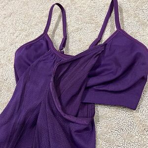NUX Women’s Medium Dark Purple Spaghetti Strap Tank Top with full built-in Unpadded Sportbra