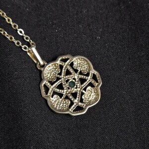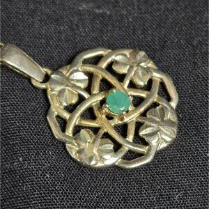 NV 925 Sterling Silver Celtic Clover Knot Pendant Necklace w/ Green Emerald Gem