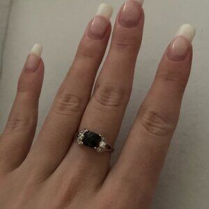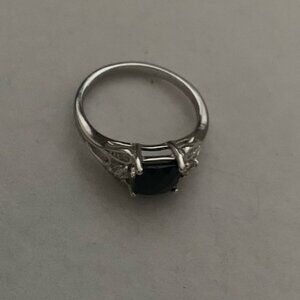 genuine 925 sterlingreal silverring withrounded squareblack centre stone & faux diamond style cz accent stones, super gorgeousring,Pretty engagementring orPromisering, or for stacking with otherrings
