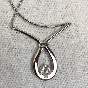 Silver tone necklace with loop and clear rhinestone pendant - very gently worn, no flaws