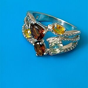 ▪️Light blue, yellow, orange brown colored rhinestones with faux diamonds