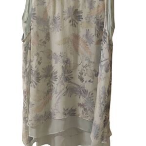 Gorgeous lightweight flowy pale blue floral layered tank top bottom sheer layer is longer than the top very pretty cool comfortable tank with scoop neck size M measures flat 20" pit to pit 27" long front 30" in back NWT