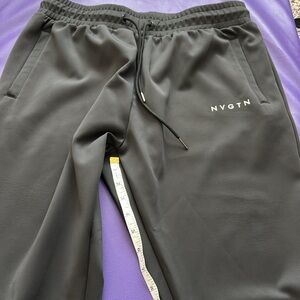 These NVGTN black sweatpants offer a sleek and minimalist design, perfect for both athletic activities and casual lounging. Made from a smooth, high-quality fabric, they ensure comfort and durability with an adjustable elastic waistband for a personalized fit. Only warn and washed once