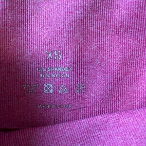 The NVGTN Magenta Pink Seamless Butt Lift Pro Biker Shorts in women's size XS are designed for active wear, specifically for activities such as gym training, cross training, and yoga. Made with a blend of nylon and spandex, these compression shorts feature a solid magenta pink color with a violet character. They have an elastic waist, stretch fabric, and are machine washable. The shorts are fitted in the buttocks, thigh, and waist areas, making them ideal for enhancing the lower body during workouts in the summer, fall, and spring seasons. 22" Waist. 7.5" Rise. 6.5" Inseam. 13.5" From top of waistband to bottom of shorts. Excellent Condition!