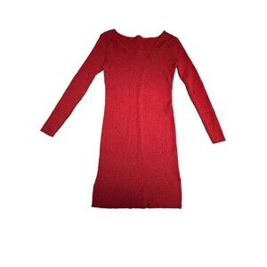 NVGTN Size XL Red Ribbed Stretch Mini Dress Long Sleeve Side Slits EUC #T10-1