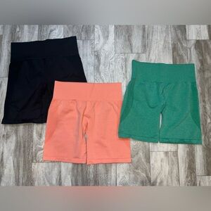 NVGTN shorts. All great condition. Peach, green, and black. Peach ones have been washed but never worn. Black shorts do have the butt scrunch the green and peach do not.