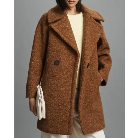 NVLT Flat Bouclé Double-Breasted Overcoat Coat Cognac Size Medium