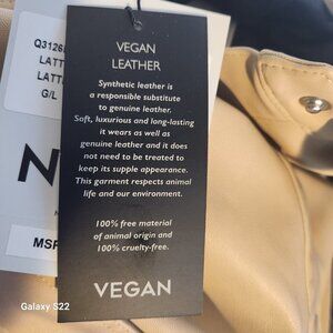 NVLT Vegan Leather Belted Shacket. NWT. Various "Latte" color, a nice dark creamy light brown. No rips/stains or tears. In original packaging (with tape/had to open to get pictures). Smoke free home. No odors. All offers are welcome. Thank you!
