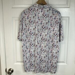 NVR LND White Floral AOP Golf Performance Stretch Polo Mens Size L