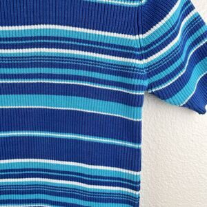 NW Blue Midi Stripe 90's Crop Butterfly Top in Blue Turquoise Knit Stripes Small