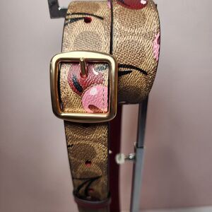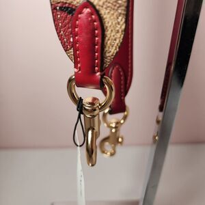NW Coach CZ021 Purse Strap Tan Signature Leather Brass Cherry Reversible