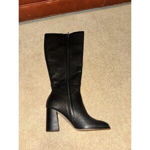 NW NEW Dolce Vita Women's Fynn Black Leather Knee High Block Heel Boots Size 8.5