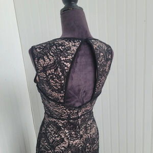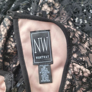 NW Nightway Black Nude Stretch Laced Sequined Gown Long Sleeveless Keyhole Sz 12
