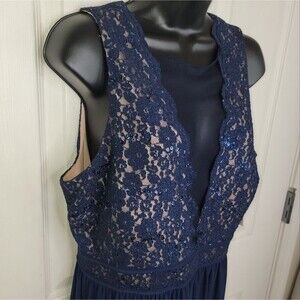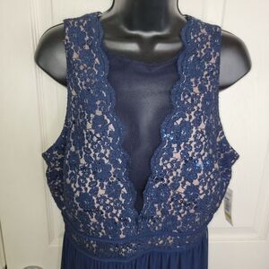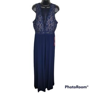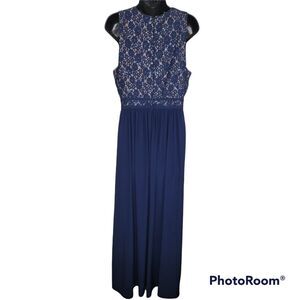 NW Nightway NWT navy blue/nude lace sequin Maxi dress gown 14