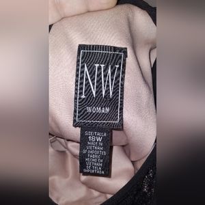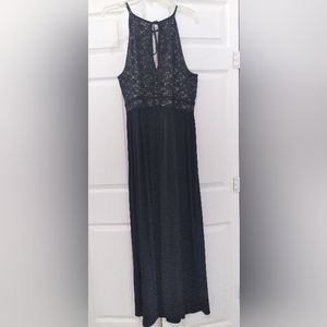 Flowy black dress with black lace over tan around the top. Ties in the back. Very stunning.
