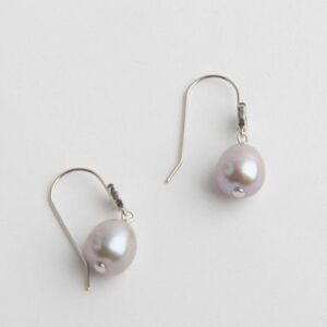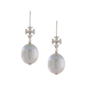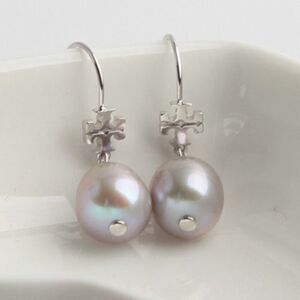 NW0T Tory Burch Silver Logo French Wire Gray Pearl Dangle Earrings