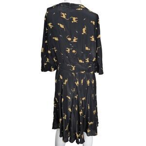NW3 Hobbs Silk Cat Mouse Print Long Sleeve Dress Pleated Midi UK 12 US 8 Novelty
