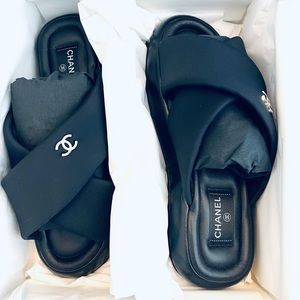 NWB SOLD OUT AUTHENTIC CHANEL CROSSOVER SLIDES FULL SET