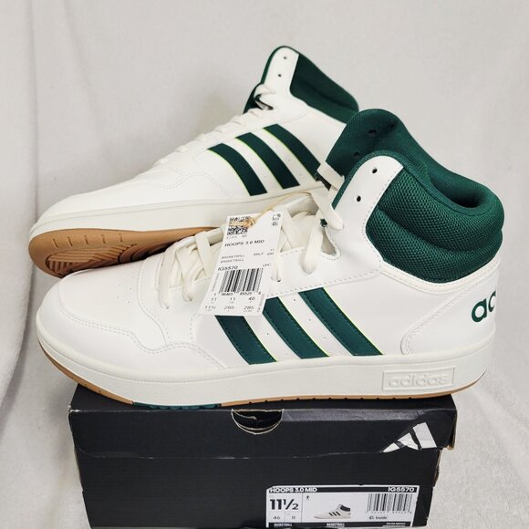 NWB- Adidas "Hoops 3.0 Mid" Men's, Classic, Vintage Shoes- White/Green-Size:11.5