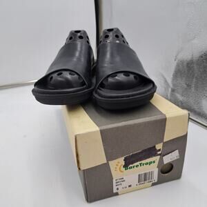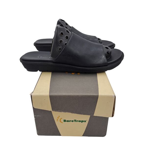 NWB Baretraps Brynn Black leather slip on wedge heel slides 6.5