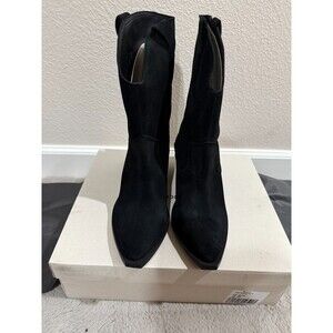 NWB Bianco Suede Western Booties Black Color Size 41 Pointed Toe Cowboy Boot