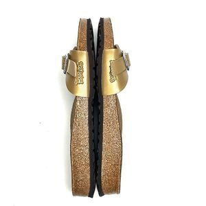 NWB Birkenstock Birkis Sandals Mallorca Gold metallic color with Rhinestone Buckle