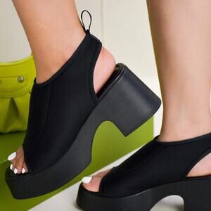 Step up your look with these bold black platform sandals, designed for both comfort and statement-making style. Perfect for the office, weekend brunch, or turning heads while out and about.