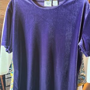 NWB Casuals Purple Velvet Velour Top XL Short Sleeve Stretchy Blouse