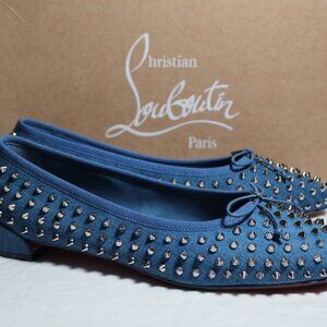 NWB Christian Louboutin Sweetie Jane Spikes Denim Flats Loafers 41