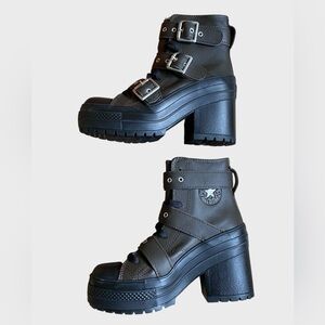 NWB Converse Chuck 70 De Luxe Heel Leather & Buckles Boots Women's Size 5.5 Men's 3.5 Brown Black Biker Moto Punk Goth Hipster Grunge