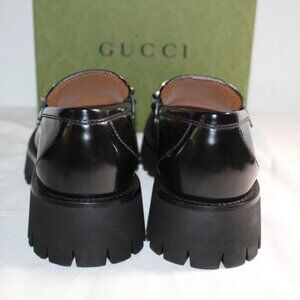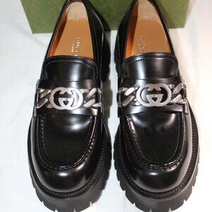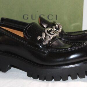 NWB GUCCI Lug Sole Loafers Black GG Hardware Lux Moccasin Magnum 40 752650