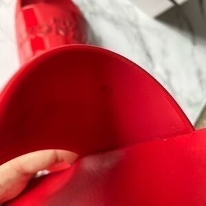 Rubber pool slides with signature logo detailing.