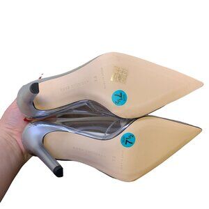 NWB Good American Glass Silver Clear Pointed Toe Stiletto Heels 7.5