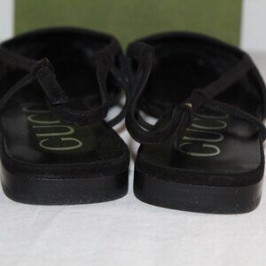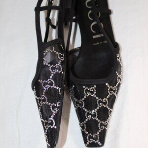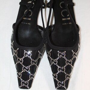NWB Gucci GG Crystal Tela Ballet Flats Slingback Mules Blck Scamosciato 40 77662