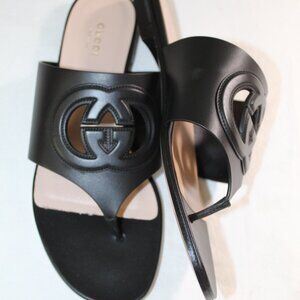 NWB Gucci GG Interlocking Cut Out Flats Thong Sandals Slip Ons Mules 39.5 782411