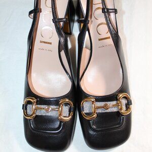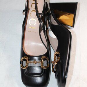 NWB Gucci GG Slingback Horsebit Pumps Chunk Heel Heels Black 41.5 643892