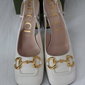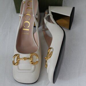 NWB Gucci GG Slingback Horsebit Pumps Chunk Heel Heels Mystic White 41.5 643892
