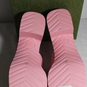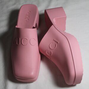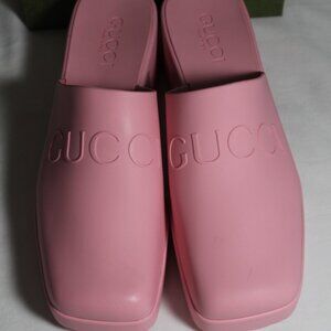 NWB Gucci Logo Rubber Clogs Mules Slip Ons Wild Rose