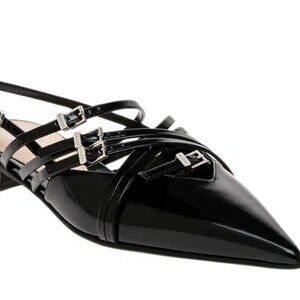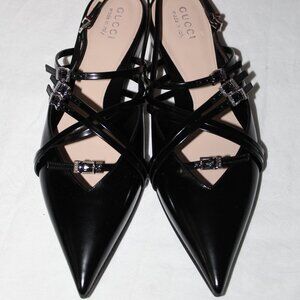 NWB Gucci Seraphine Strappy Buckle Pointed Toe Flats Slingback Black 39.5 796015